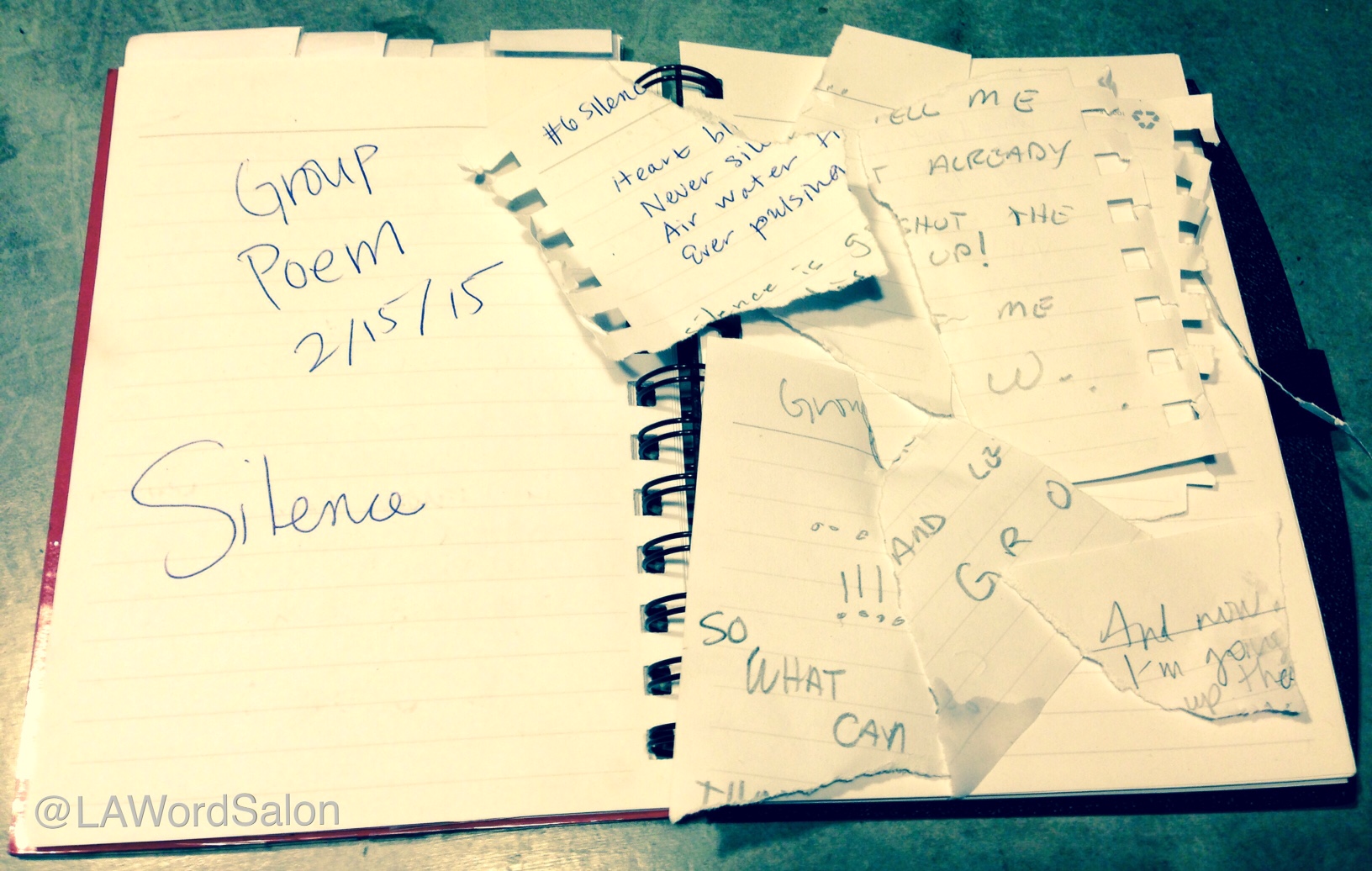Last week’s group poem was pretty aptly ripped up. Silenced. Here are the pieces: