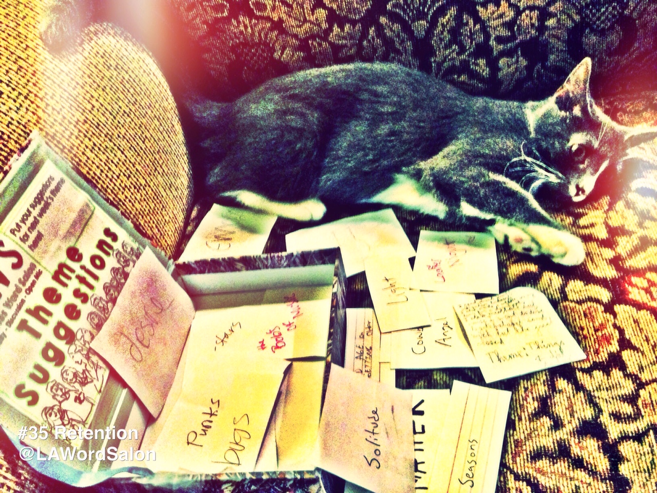 Here are the theme suggestions gathered at LAWS #35 Retention. Theme suggestions from LAWS #30 – LAWS #34 are kept neatly in bags, folders, and mini drawers. They may find their ways onto the internet one day. If not! Ya should have been there!