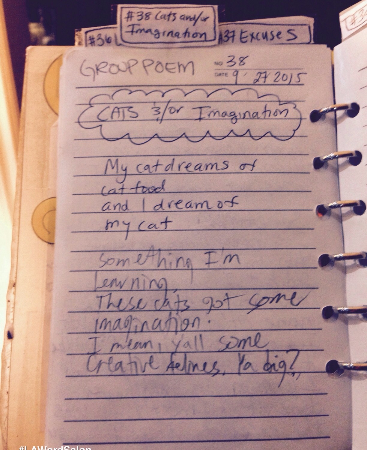 Without further ado we present to you the LAWS Group Poem from two weeks ago, LAWS #38 Cats and/or Imagination.