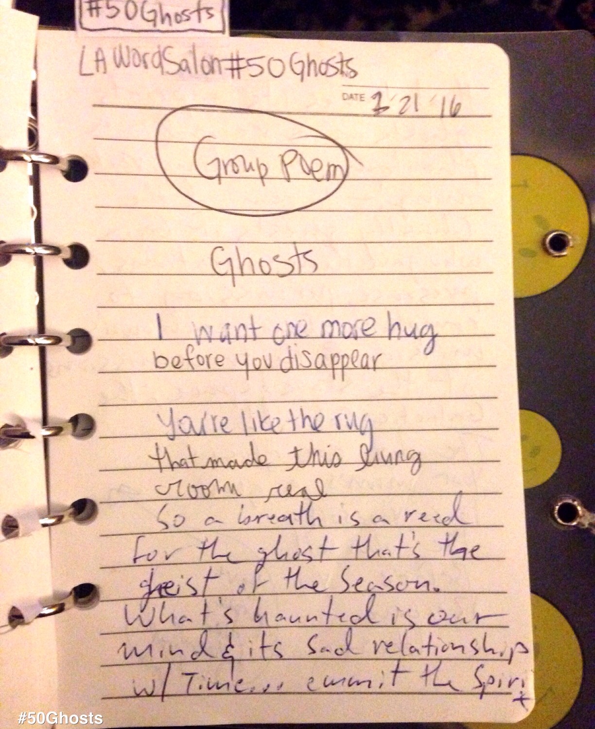 Every LAWS we put some words together in the form of a Group Poem. Here’s our words from last Sunday at LAWS #50 Ghosts!
